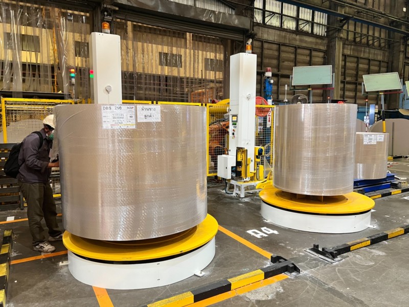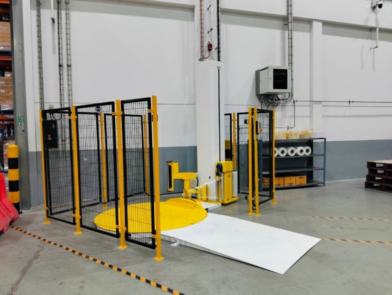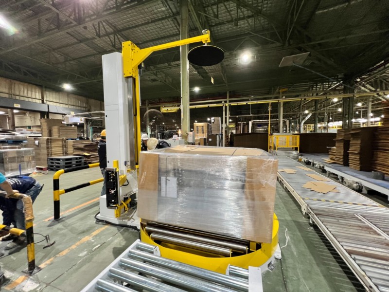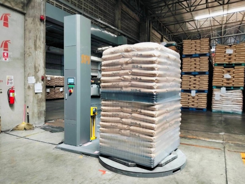เครื่องพันฟิล์มพันพาเลทสินค้าอัตโนมัติแบบปิดคลุมด้านบน Brand TOP WRAPPING รุ่น SPJ-W FRT SERIES มีความร็วในการหมุน 22 รอบ/นาที มีพลาสติดปิดด้านบน สามารถพันฟิล์มเพื่อป้องกันฝุ่นจากด้านบนและพันฟิล์มแบบป้องกันน้ำจากด้านบนไหลเข้าที่สินค้าได้ *ดูการทำงานเครื่อง Youtube1 , Youtube2 , Youtube3 , Youtube4 , Youtube5