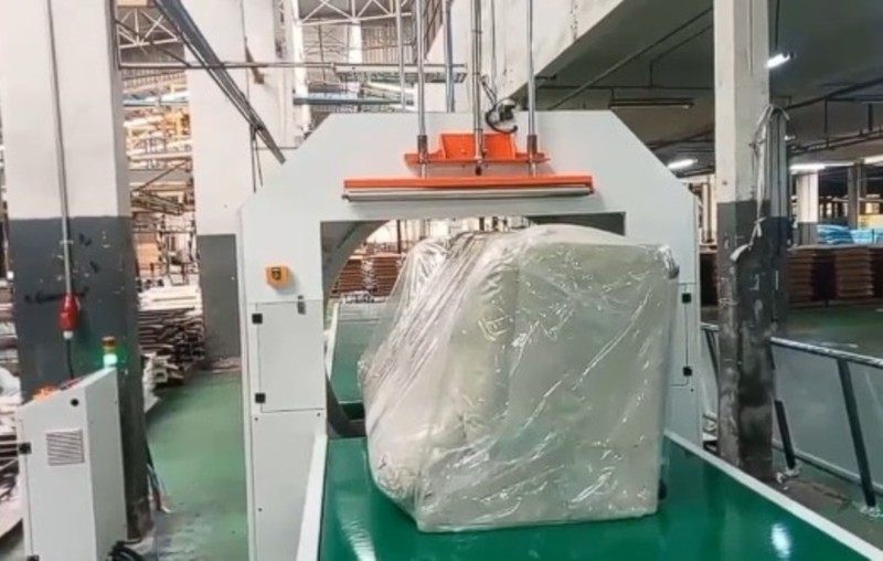 เครื่องพันฟิล์มพันพาเลทอัตโนมัติ Brand TOP WRAPPING รุ่น SPJ-WFT TOP PRESS SERIES มีตัวกดด้านบน แบบอัตโนมัติ เหมาะกับการพันฟิล์มยืดสินค้าบนพาเลท ที่สินค้ามีน้ำหนักเบาหรือมีความสูงมาก เช่นกระสอบที่มีความลื้น กล่องขนาดเล็ก พันสินค้ากระป๋อง ซึ่งทำให้สินค้าโค้นล้มได้ง่าย จึงจำเป็นต้องมีตัวกดด้านบนสินค้าไว้ช่วยระหว่างพันฟิล์มสินค้า