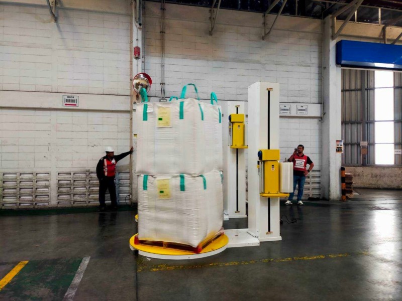 เครื่องพันฟิล์มพันพาเลทอัตโนมัติ Brand TOP WRAPPING รุ่น SPJ-WFT TOP PRESS SERIES มีตัวกดด้านบน แบบอัตโนมัติ เหมาะกับการพันฟิล์มบนพาเลท ที่สินค้ามีน้ำหนักเบาหรือมีความสูงมาก เช่นกระสอบที่มีความลื้น กล่องขนาดเล็ก พันสินค้ากระป๋อง ซึ่งสินค้าโค้นล้มได้ง่าย จึงจำเป็นต้องมีตัวกดด้านบนสินค้าไว้ช่วยระหว่างพันฟิล์มสินค้า *ดูการทำงานเครื่อง Youtube1 , Youtube2 , Youtube3