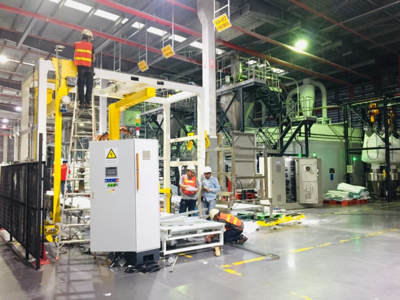 เครื่องพันฟิล์มพันพาเลทอัตโนมัติ Brand TOP WRAPPING รุ่น SPJ-WFT TOP SHEET SERIES มีพลาสติกปิดด้านบน พันฟิล์มแบบ waterproof กันน้ำเข้า ทำงานร่วมระบบคอนเวเยอร์ลำเลียง ควบคุมด้วยเซ็นเซอร์ไม่ต้องมีพนักงาน ใช้ PLC-HMI-Invertor คอนโทรล มีระบบยืดฟิล์มก่อนพัน 200-300% มีชุดตัดและติดปลายฟิล์มแบบอัตโนมัติ *ดูการทำงานเครื่อง Youtube1 , Youtube2 , Youtube3